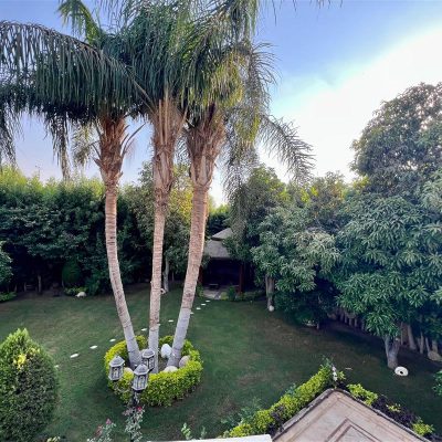 الفيلا مزودة بحديقة رائعة تضم برجولة وأشجار فواكه (مانجو، برتقال، رمان، ليمون، جوافة) بالإضافة لأشجار زينة ونخيل وورد بلدي.