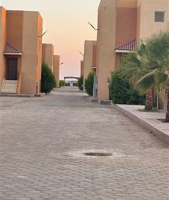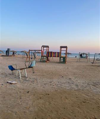 An excellent strategic location, 100 meters away from the sea, surrounded by sandy beaches and the sea, excellent and characterized by complete privacy… and a view of 2 swimming pools behind the villas. It is considered a fully built and independent duplex that does not pass by the neighbour… each floor is 110 meters (first + upper), and there is a private roof for the chalet.